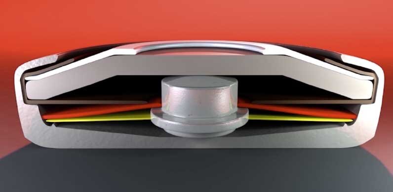 Um die Funktion und das Schaltverhalten des Bimetalltemperaturbegrenzers zu verbessern, wurde - im Gegensatz zu herkömmlichen Systemen - eine weitere Federscheibe eingefügt, wodurch die Bimetallscheibe kontinuierlich arbeiten kann. Diese Art Schaltwerk kann eine höhere Stromtragfähigkeit sowie einen wesentlich geringeren Kontaktabbrand und eine höhere Lebensdauer aufweisen.