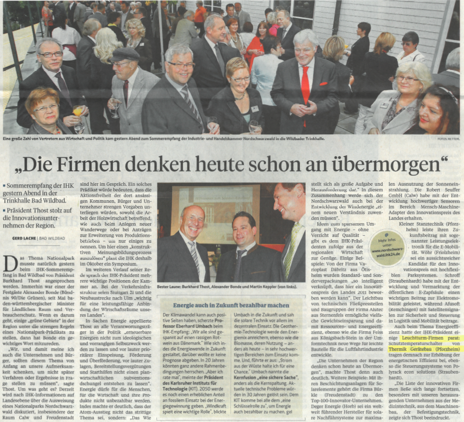 Eine große Zahl von Vertretern aus Wirtschaft und Politik kam zum Sommerempfang der IHK Nordschwarzwald und prämierte Leuchtturm Firmen, wie die Thermik Gerätebau mit ihren Schutztemperaturschaltern, mit denen Sie zur Erhöhung der energetischen Effizienz beitragen.