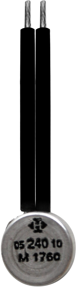 Switchgear consisting of a movable silver contact (1), a contact bearer (2), a spring snap-in disc (3) and a bimetallic disc (4) which is riveted into one another, undetachable and fixed in a positive lock and self-aligning between a conductive, heat-transferring housing (5) and a contact cap made of steel (6) that is insulated from it, plus a stationary countercontact (7). At the same time, the switchgear is carried by the spring snap-in disc (3) acting as a transfer element for electric current which is held between a supporting collar and a circumferential ring. As such, the bimetallic disc (4) underlying it, that is also stuck out from the movable contact (1), can continuously work (exposed) by mechanical loads without the contact pressure defined by the spring snap-in disc (3) diminishing. As soon as the bimetallic disc (4) reaches its rated switching temperature, it effectively springs against the throw force of the spring snap-in disc (3) into its inverted position. The contact is abruptly opened. The temperature will now fall, the bimetallic disc (4) will only snap back upon reaching a defined reset temperature and the contact is closed again.