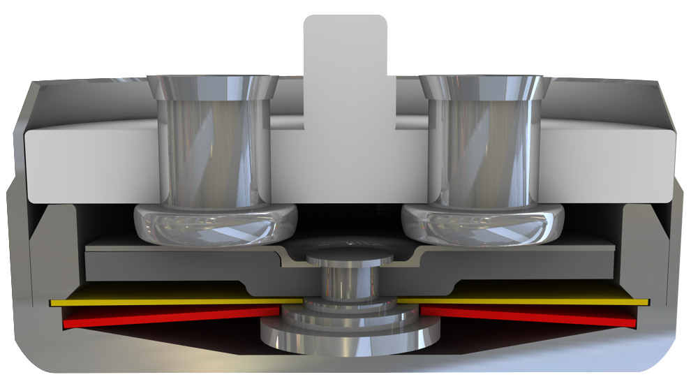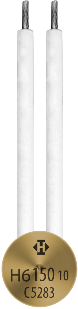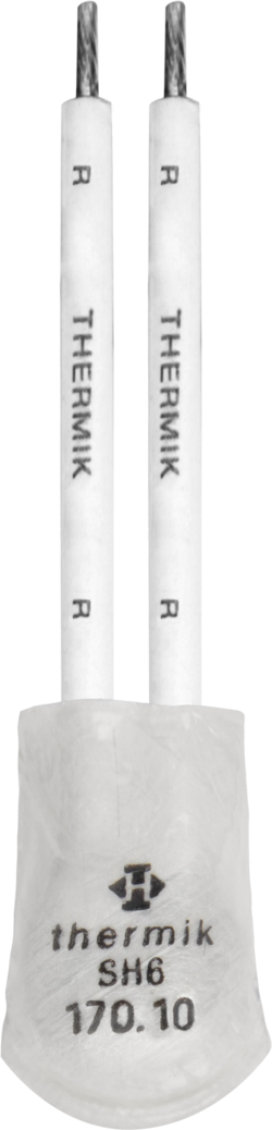 Switchgear consisting of a mobile and circular contact bridge (1), a contact bearing pin (2), a spring snap-in disc (3) and a bimetallic disc (4) which is riveted into one another, undetachable and fixed in a positive lock and self-aligning between a non-conductive floor of a housing (5) and an insulating ceramic bearing (6) with two integrated stationary contacts (7). At the same time, the switchgear is supported by the spring snap-in disc (3) with the contact bridge (1) acting as a transfer element for electric current which is held between a supporting collar and a circumferential ring. As such, the bimetallic disc (4) underlying it, that is also stuck out from the contact bearing pin (2), can continuously work (exposed) by mechanical loads without the contact pressure defined by the spring snap-in disc (3) diminishing. As soon as the bimetallic disc (4) reaches its rated switching temperature, it effectively springs against the throw force of the spring snap-in disc (3) into its inverted position. The contacts are abrubtly opened. The temperature will now fall. The bimetallic disc (4) will only snap back upon reaching a defined spring back temperature and the contacts are abruptly closed again. As a result of the dimensioning of the contact bearing pin (2), an easy, circular rotation of the circle-shaped contact bridge is enabled with every switch so that transfer resistances remain constantly below the minimum limit after many switch cycles and the long term stability is sustained even under high levels of stress.