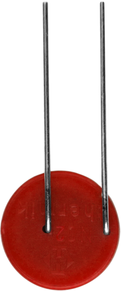 Das Schaltwerk der Baureihe 02 ist formschlüssig und selbstausrichtend zwischen dem Boden eines stromleitfähigen Gehäuses (1) und einem davon isolierten Deckel (2) aus Stahl mit integriertem Silberkontakt (6), der dieses knopfzellenartig verschließt, eingespannt. Eine Bimetall­­schnappscheibe (5) drückt mittels ihrer Stellkraft den sie mittig durchragenden, beweglichen Kontakt (4) an dessen umlaufender Schulter (7) gegen die den Kontakt (4) ebenfalls umfassende Federschnappscheibe (3). Aufgrund der höheren Stellkraft der Bimetallscheibe (5) bleibt der Schaltkontakt gegen den mechanischen Widerstand der Federschnappscheibe (3) vor Erreichen der Nennschalttemperatur geöffnet. Der Kontakt bleibt auch dann geöffnet, solange die Bimetallscheibe (5) – nur auf die Umgebungstemperatur reagierend – kontinuierlich arbeitet und ihre Form verändert. Erst bei Erreichen der Nennschalttemperatur schnappt die Bimetallscheibe (5) in ihre umgekehrte Lage und durch den schlagartig frei­werdenden Druck der Federschnappscheibe (3) wird der Kontakt geschlossen. Die Federschnappscheibe (3) ist nun Stromübertragungsglied und ermöglicht so, dass die Bimetallscheibe (5) weiterhin kontinuierlich arbeiten kann. Bei Erreichen der Rücksprungtemperatur schnappt die Bimetallscheibe in ihre Ausgangslage zurück und der Kontakt ist wieder geöffnet.