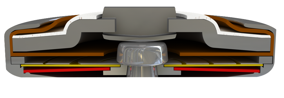 Ein unverlierbar ineinander vernietetes Schaltwerk bestehend aus einem beweglichen Silberkontakt (1), einem Kontaktträger (2), einer Federschnappscheibe (3), einer Bimetallscheibe (4) und einer Kontaktzunge (5), ist formschlüssig und selbstausrichtend zwischen einem stromführenden, wärmeübertragenden Gehäuse (6) und einem davon isolierten Kontaktdeckel (7) aus Stahl mit stationärem Gegenkontakt (8), eingespannt. Dabei wird das Schaltwerk von der als Stromübertragungsglied fungierenden Kontaktzunge (5), die zwischen einer Auflageschulter und einem umlaufenden Ring gehalten wird, getragen. Das unter ihr liegende, ebenfalls vom beweglichen Kontakt (1) durchragte Schaltwerk kann somit freiliegend von mechanischen und elektrischen Belastungen kontinuierlich arbeiten, ohne dass der durch die Federschnappscheibe (3) definierte Kontaktdruck abnimmt. Sobald die Bimetallscheibe (4) ihre Nennschalttemperatur erreicht, springt sie gegen die Stellkraft der Federschnappscheibe (3) wirkend in ihre umgekehrte Lage. Der Kontakt wird schlagartig geöffnet. Sinkt nun die Temperatur, schnappt die Bimetallscheibe (4) erst bei Erreichen einer definierten Rückschalttemperatur zurück und der Kontakt ist wieder geschlossen.