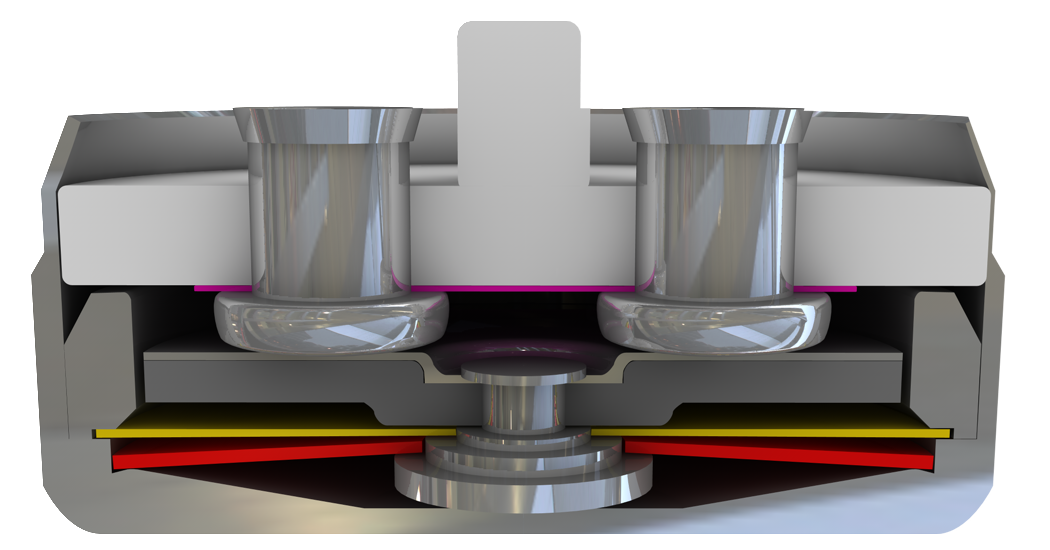 Ein unverlierbar ineinander vernietetes Schaltwerk bestehend aus einer beweglichen und umlaufenden Kontaktbrücke (1), einem Kontaktträgerbolzen (2), einer Federschnappscheibe (3) und einer Bimetallscheibe (4), ist formschlüssig und selbstausrichtend zwischen einem nicht stromführenden Gehäuseboden (5) und einem Widerstandskeramikträger (6) mit zwei integrierten, stationären Kontakten (7) als Elektroden, eingespannt. Dabei wird das Schaltwerk mit der als Stromübertragungsglied fungierenden Kontaktbrücke (1) von der Federschnappscheibe (3), die zwischen einer Auflageschulter und einem umlaufenden Ring gehalten wird, getragen. Die unter ihr liegende, ebenfalls vom Kontaktträgerbolzen (2) durchragte Bimetallscheibe (4) kann somit freiliegend von mechanischen Belastungen kontinuierlich arbeiten, ohne dass der durch die Federschnappscheibe (3) definierte Kontaktdruck abnimmt. Sobald die Bimetallscheibe (4) ihre Nennschalttemperatur erreicht, springt sie gegen die Stellkraft der Federschnappscheibe (3) wirkend in ihre umgekehrte Lage. Die Kontakte (7) werden schlagartig geöffnet. Die parallel geschaltete Widerstandskeramik (6) hält nun die Betriebsspannung und entfaltet unabhängig von der Umgebungstemperatur eine elektrische Heizleistung auf das Schaltwerk und hält es dauerhaft oberhalb der Rücksprungtemperatur, so dass es nicht zurückschalten kann. Die Kontakte bleiben geöffnet. Erst nach Wegfall der externen Betriebsspannung bzw. Netztrennung kann der Temperaturbegrenzer wieder abkühlen und in den ursprünglichen Schließzustand zurückschalten.