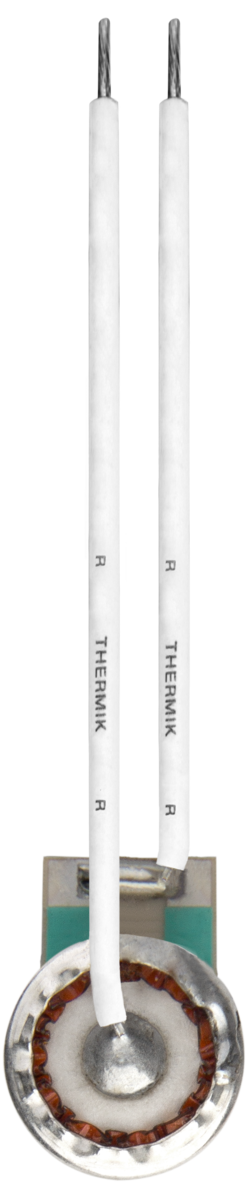 Das Schaltwerk der Baureihe Z1 ist formschlüssig und selbstausrichtend zwischen dem Boden eines stromleitfähigen Gehäuses (1) und einem davon isolierten Kontaktdeckel aus Stahl (2) mit integriertem, stationären Silberkontakt (6), der dieses knopfzellenartig verschließt, eingespannt. Die das Stromübertragungsglied bildende Federschnappscheibe (3) trägt zugleich den beweglichen Kontakt (4) und entlastet – beständigen, gleichbleibenden Kontaktdruck ausübend – die Bimetallscheibe (5) von Stromdurchfluss und Eigenerwärmung. Die Bimetallscheibe (5) wird an dem durchragenden beweglichen Kontakt (4) gehalten, ohne verschweißt oder eingespannt befestigt werden zu müssen. Sie kann somit freiliegend kontinuierlich arbeiten. Bei Erreichen der Nennschalttemperatur schnappt die Bimetallscheibe (5) in ihre umgekehrte Lage und drückt die Federschnappscheibe (3) nach unten. Der Kontakt wird schlagartig geöffnet und der Temperaturanstieg des zu schützenden Gerätes unterbrochen. Sinkt nun die Temperatur, schnappt die Bimetallscheibe (5) bei Erreichen einer definierten Rückschalttemperatur in ihre Ausgangslage zurück und der Kontakt ist wieder geschlossen. Durch den in Reihe geschalteten Halbleiter auf Aluminium-Oxyd-Basis (7) mit definiertem Vorwiderstand wird das Schaltwerk in Abhängigkeit zum Betriebsstrom von außen beheizt und zur Abschaltung gebracht. Durch diese Konstruktion wird es nicht mehr notwendig, den Temperaturbegrenzer an die potentielle Hitzequelle des zu schützenden Gerätes anzukoppeln. Solche Temperaturbegrenzer werden oft gleichwirksam an anderen Stellen im zu schützenden Gerät appliziert.